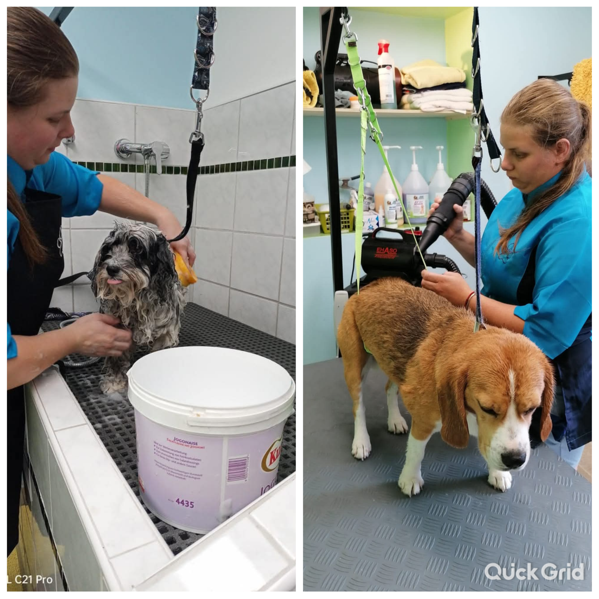 Beim Baden Föhnen und Bürsten wird das Fell des Hundes nicht nur gereinigt, sondern auch von abgestorbenen Haaren befreit und gleichzeitig in Form gebracht. Das ist wichtig damit immer gut Luft zu der Haut kommen kann um somit Hauptprobleme zu vermeiden.